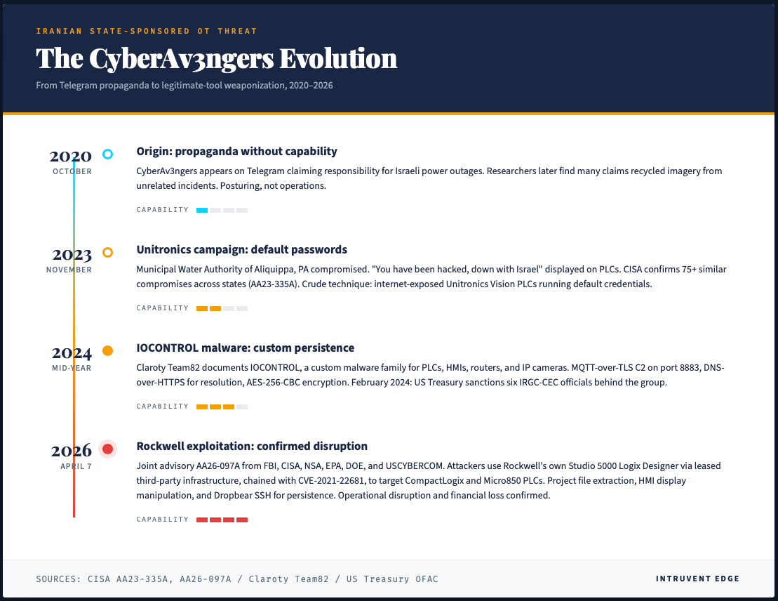 The 2023 campaign confirmed CyberAv3ngers as a capable operational group with sustained interest in US critical infrastructure. The 2026 campaign shows where that capability has grown.