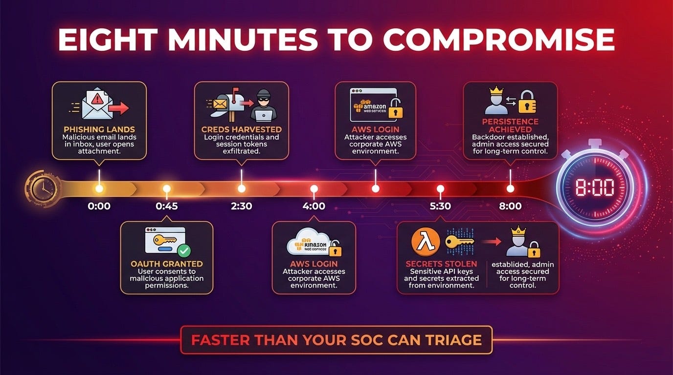 From phishing email to full AWS environment compromise in under 10 minutes.