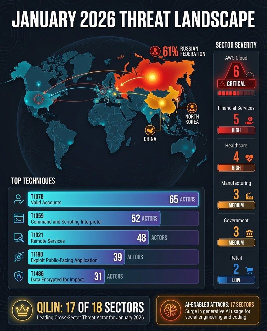 Active Threat Groups: 70 (up 12% month-over-month, highest count since tracking began)