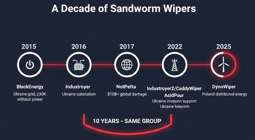 Sandworm has been refining destructive malware for a decade. The pattern is clear: