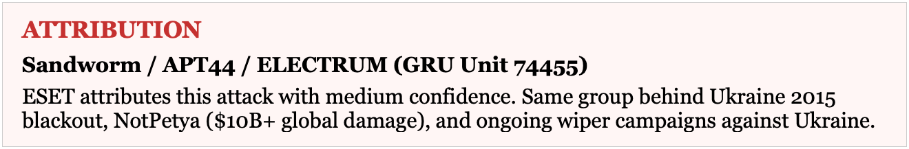 This marks the first known Sandworm attack targeting a NATO member’s critical infrastructure. That’s not a small detail.
