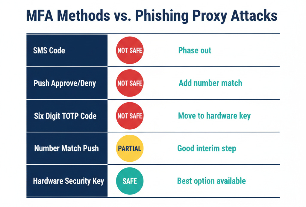The fix exists. Hardware security keys and passkeys are cryptographically immune to these attacks. Blocking legacy protocols closes the password-spraying backdoor. Conditional Access policies and token monitoring catch what gets through. None of this is exotic or experimental. It’s available today, from the vendors you already use.