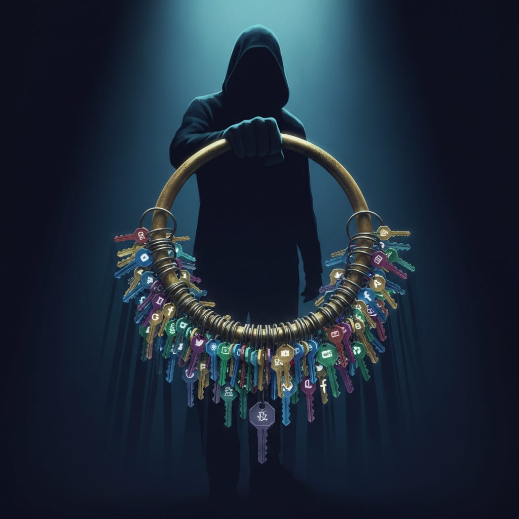 Every time a company gets breached, the attackers add another set of keys to the ring. LinkedIn breach? That is 117 million keys. Adobe breach? Another 153 million. Dropbox? 68 million more. These “combolists” (username/password combinations) circulate freely on criminal forums, often for free.