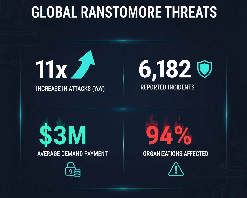 6,182 extortion attacks occurred in 2025, a 23% increase over 2024, with data-theft-only attacks driving the growth
